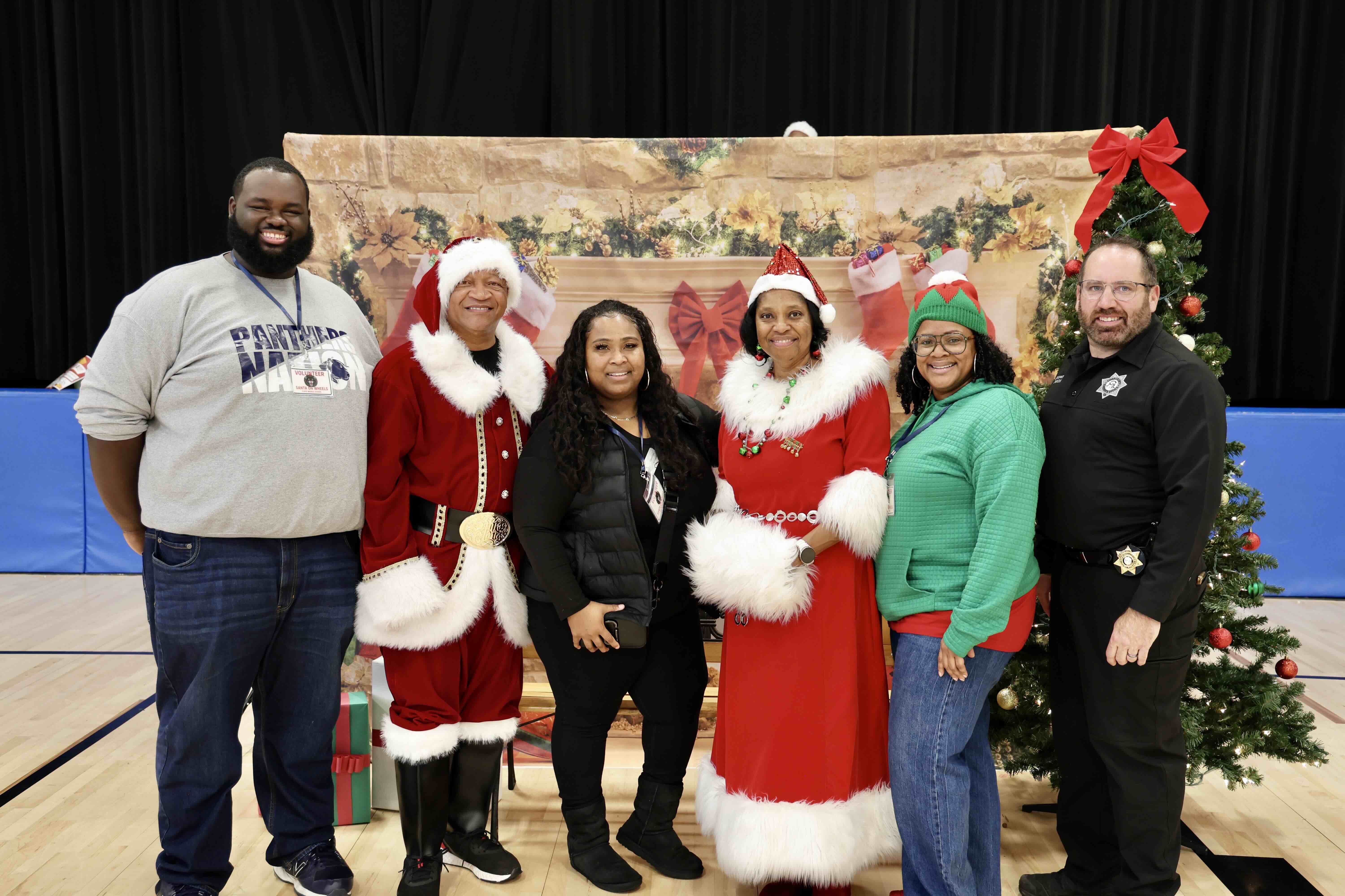 Command staff members pose together during the 2025 Santa on Wheels event at Floyd Middle School.