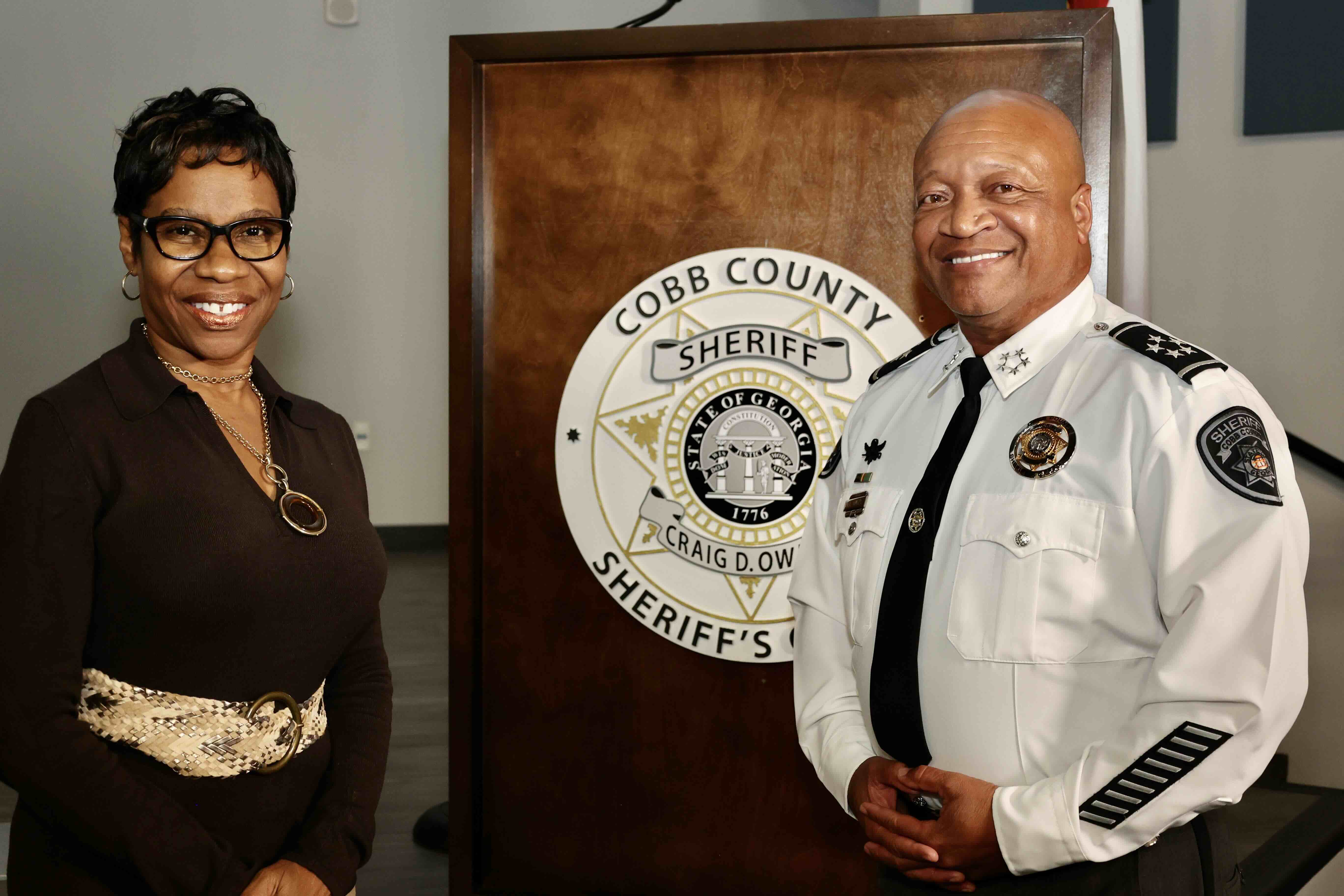 Cobb County District 4 Commissioner, Monique Sheffield, takes a picture with Sheriff Owens during the September 2025 Community Briefing.