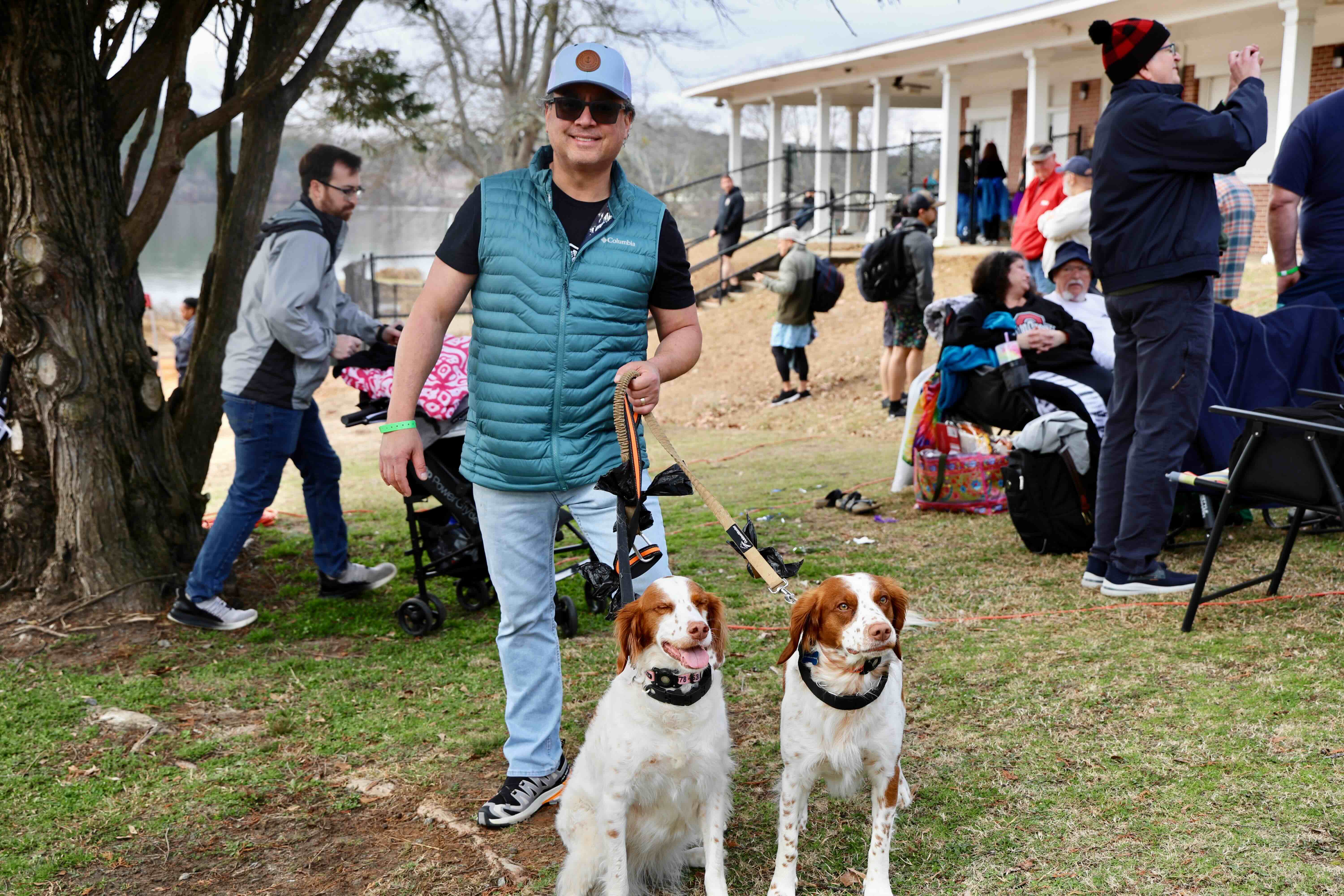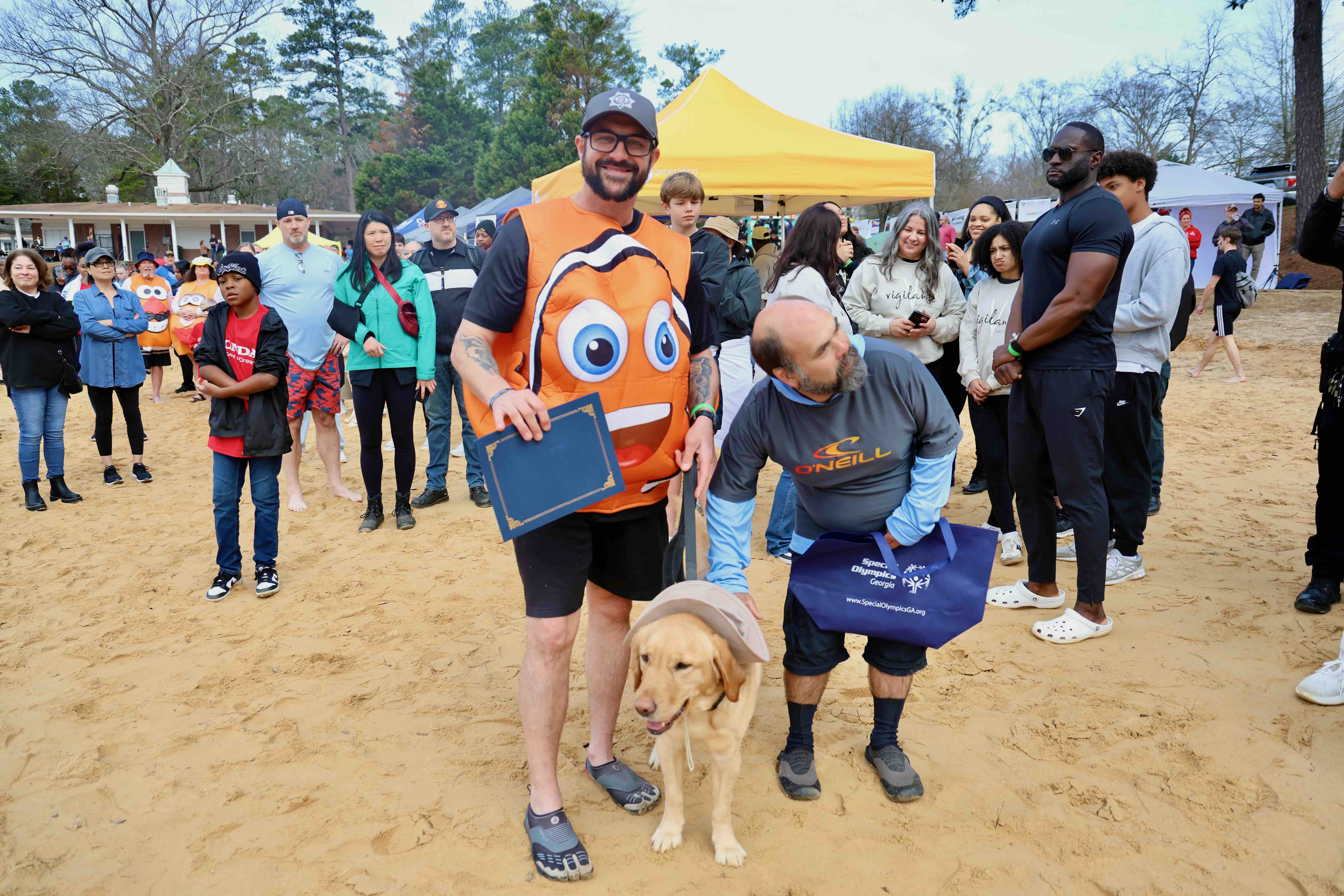 One of our Polar Plunge participants struck a pose with his two four-legged friends—who took the icy plunge right alongside him!