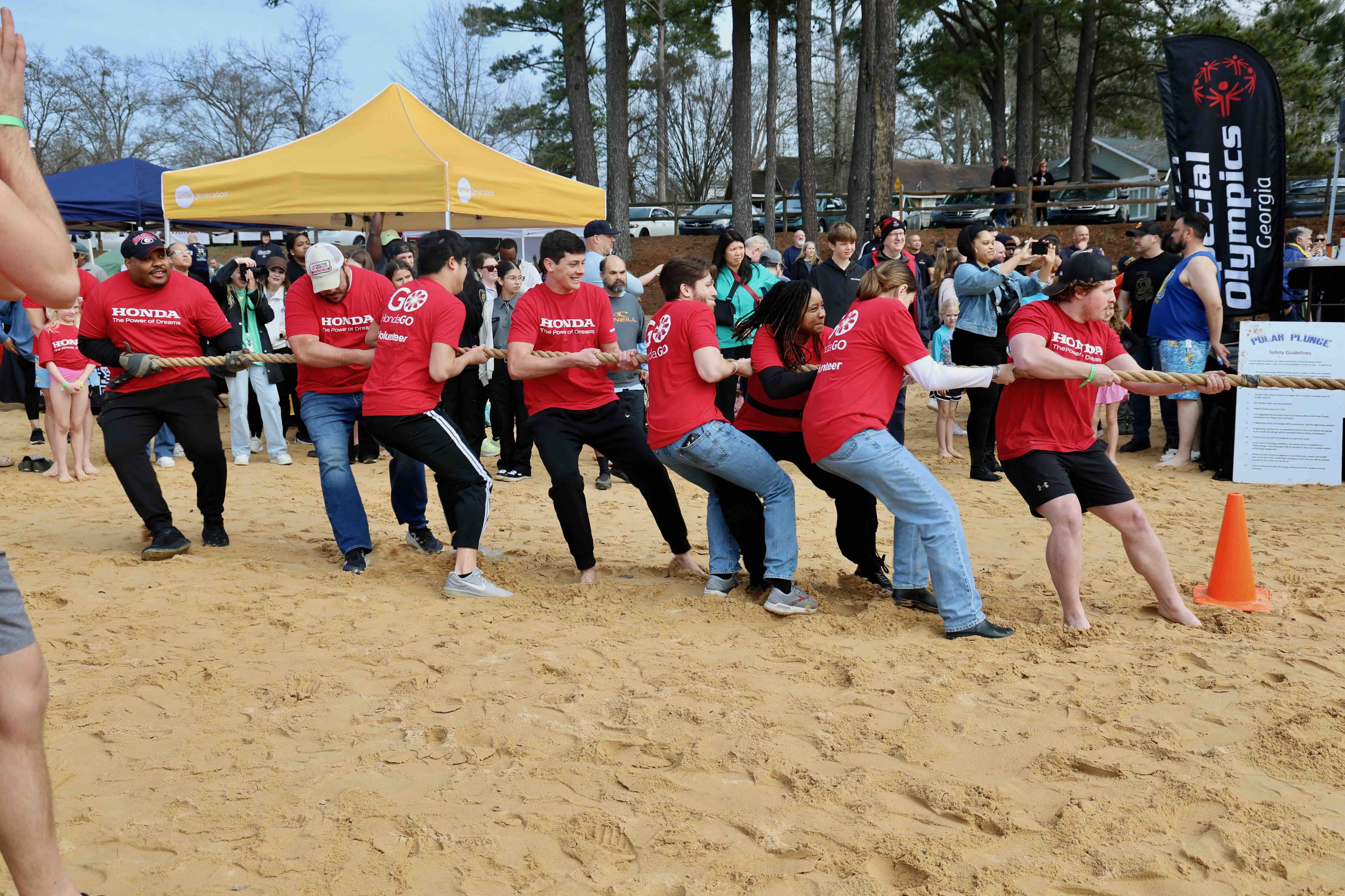 Volunteers from Honda brought the energy to the Tug-A-War at the 2026 Polar Plunge!